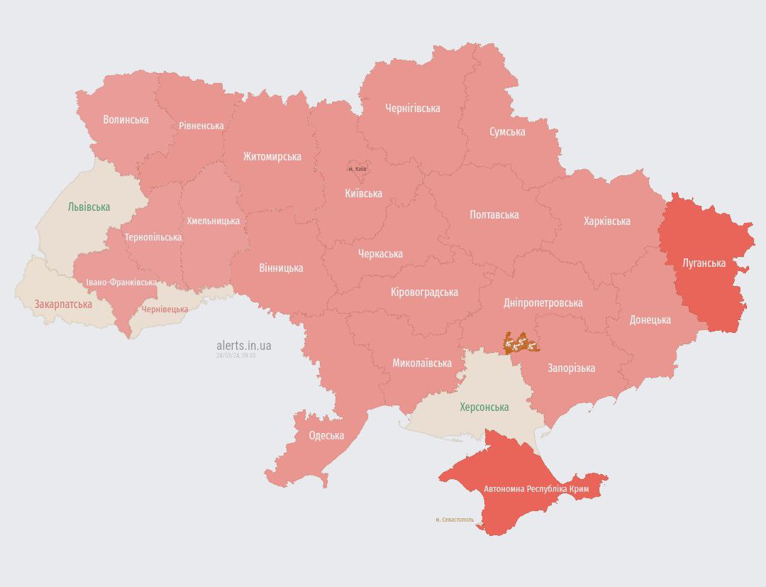 09:29 Угроза ракетного удара баллистикой в большинстве областей.