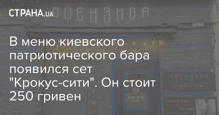 Киевский арт-бар "Офензива", расположенный на Подоле, ввел в свое меню сет "Крокус-сити" - по названию концертного зала в Москве, где позавчера вследствие теракта перед концертом группы "Пикник" погибли более 130 человек.