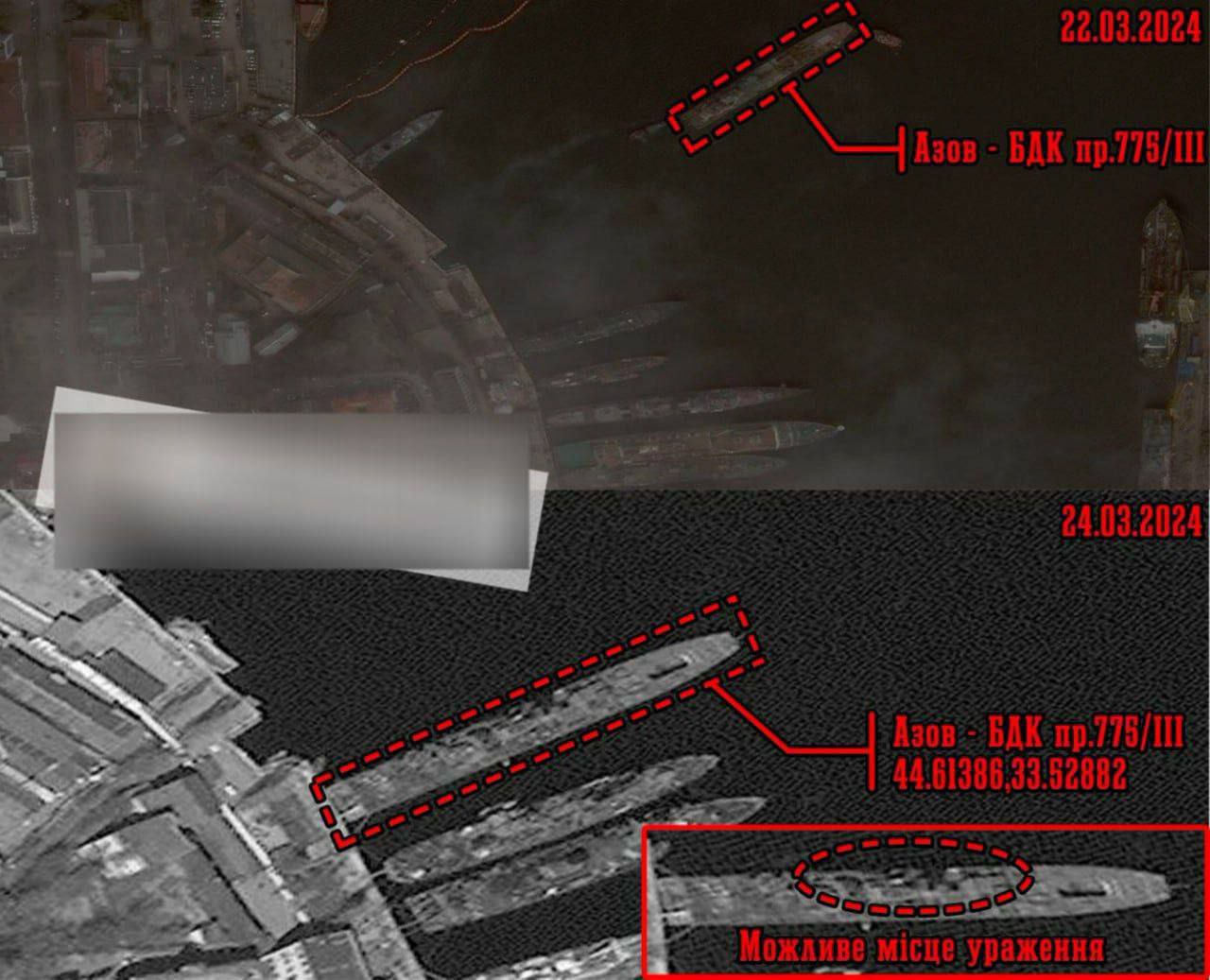 Ряд пабликов со ссылкой на спутниковые снимки заявляют, что прилеты двух ракет были в пирс рядом с десантными кораблями и в пустой док. То есть корабли не пострадали.