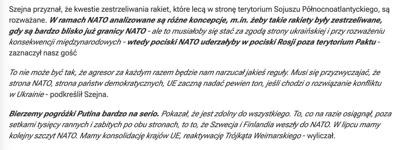 Об этом заявил заместитель министра иностранных дел Польши Анджей Шейна в интервью RMF24.
