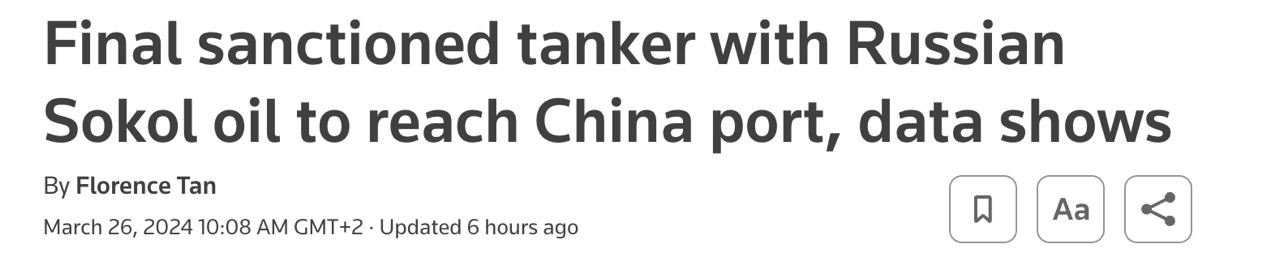 Ранее мы писали, что от закупок нефти марок ВСТО и Sokol отказалась Индия. В результате к концу февраля в подвешенном состоянии оказались по меньшей мере 14 партий нефти Sokol общим объемом около 10 миллионов баррелей. Их решил принять Китай, что позволило Пекину заменить российской нефтью дорогостоящие поставки из Ирана. Ожидается, что объемы добычи нефти Sokol утроятся и достигнут рекордного уровня в 379 000 баррелей в день.