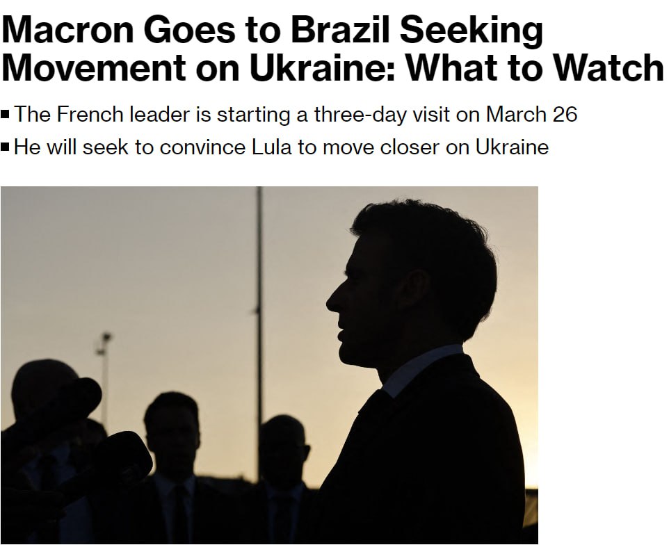 Bloomberg пишет, что позиция Бразилии в значительной степени находит отклик на глобальном Юге, к которому относят незападные страны с развивающейся экономикой. Как утверждают французские чиновники, Макрон рассматривает Бразилию как ключевого игрока среди этой группы стран, особенно учитывая то, что она на ротационной основе председательствует в G20, в которую входят большинство крупнейших экономик мира.