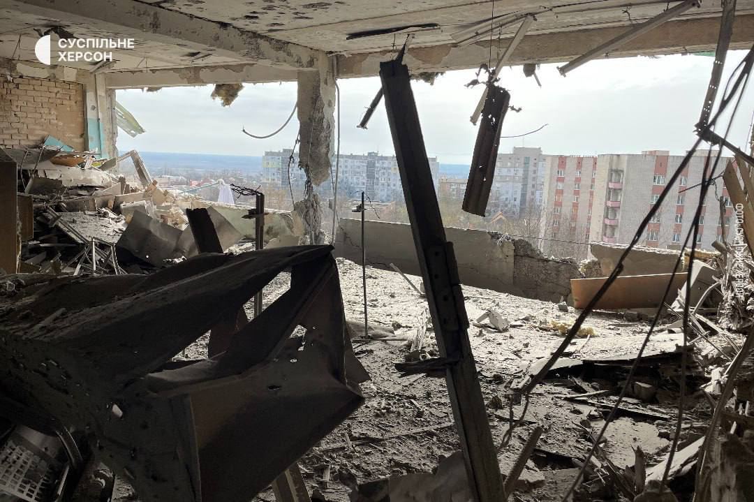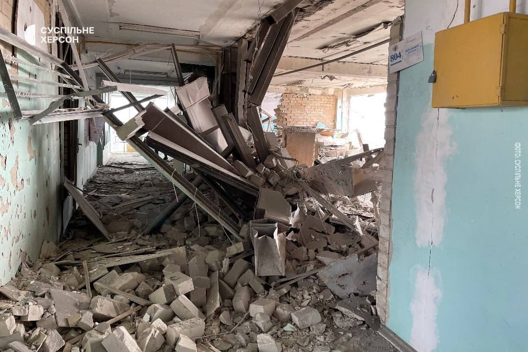 Последствия обстрела университета в Херсоне. Фото: суспильне