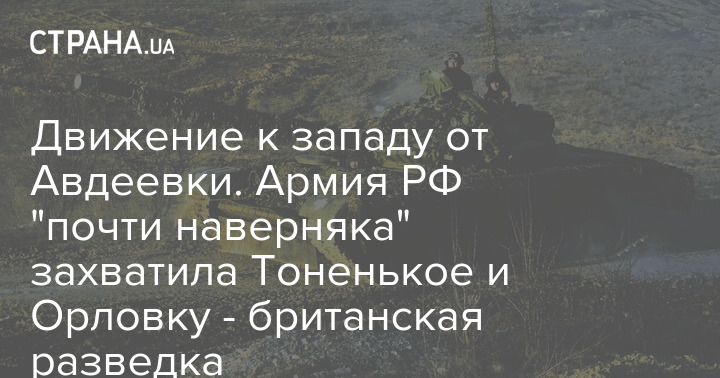 Российские войска "почти наверняка" захватили Тоненькое и Орловку. Они также продолжают постепенное продвижение к западу от Авдеевки.
