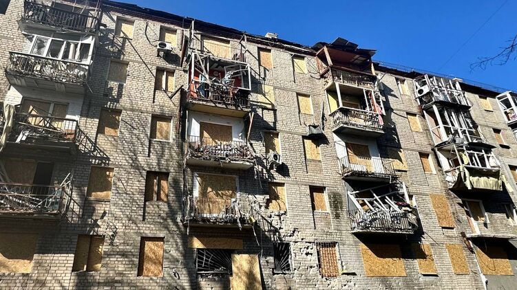 Пострадавший от предыдущего прилета дом в Харькове. Фото: Харьковский горсовет