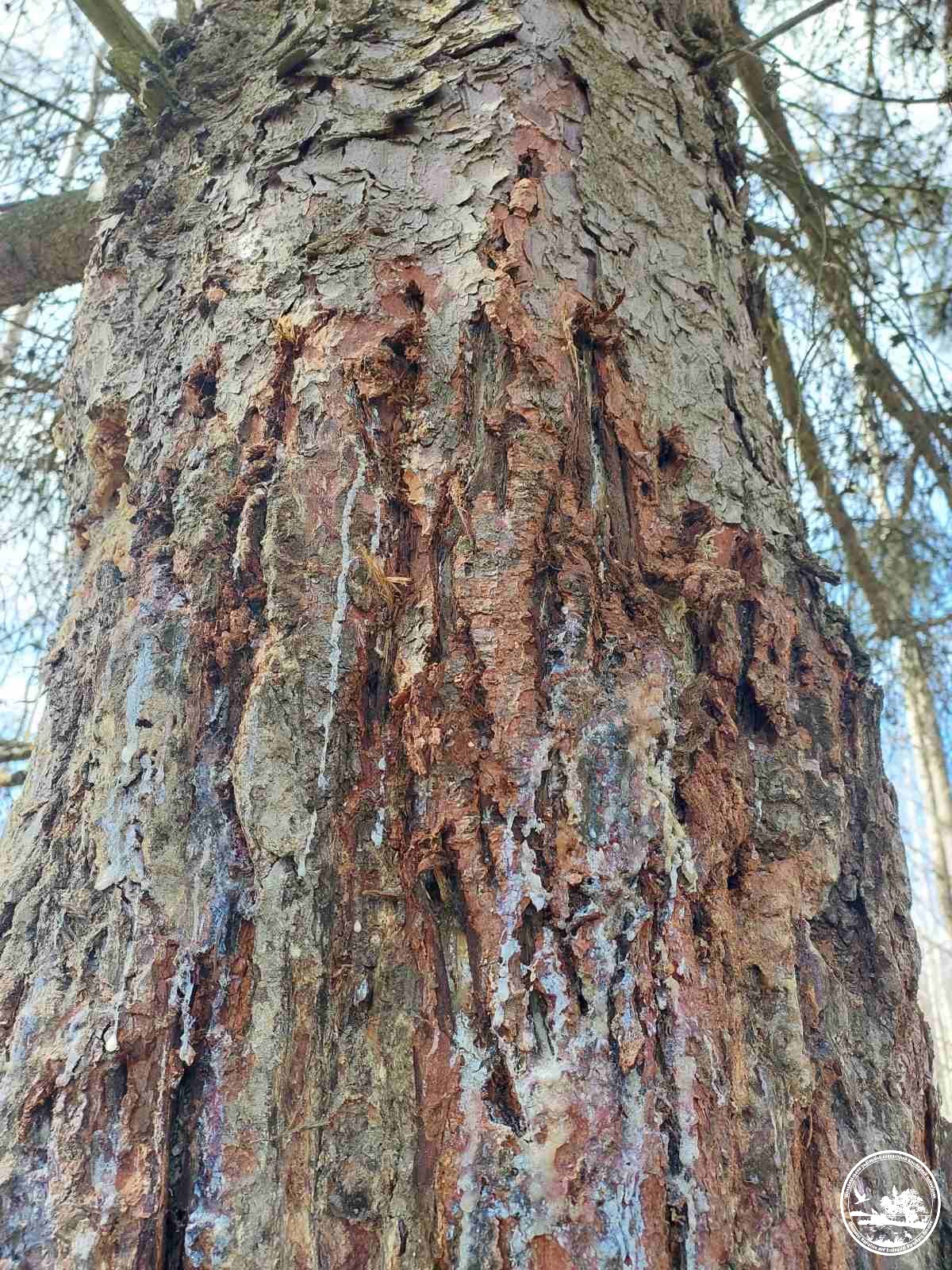 Кроме фотографий, ученые встречают и материальные следы жизнедеятельности медведя. Так, недавно обнаружились его метки на территории Опачицкого естественно-научного исследовательского отдела – ель с ободранной медвежьими когтями корой и налипшей шерстью на смолистом стволе дерева.