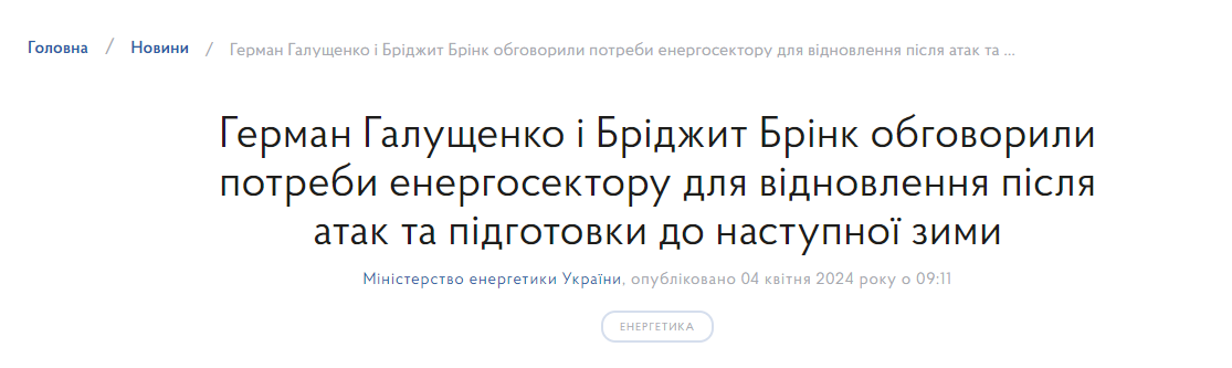 "Нам удалось стабилизировать ситуацию, однако враг продолжает атаки, в том числе на подстанции", - сказал Галущенко во время встречи с послом США в Украине Бриджит Бринк.
