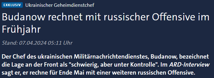 Об этом начальник Главного управления разведки Кирилл Буданов заявил в интервью немецкому телеканалу ARD.