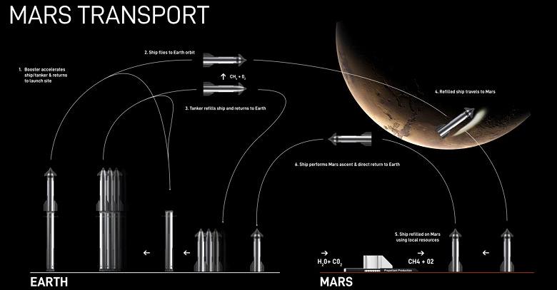 Для покорения Марса понадобится не одна сотня ракет. В компании Маска сейчас работают над ракетами Starship. Планируется, что в 2025 году Starship взлетит и приземлится на Землю. При этом в марсианской миссии будет участвовать не нынешний прототип, а ракеты Starship 3.
