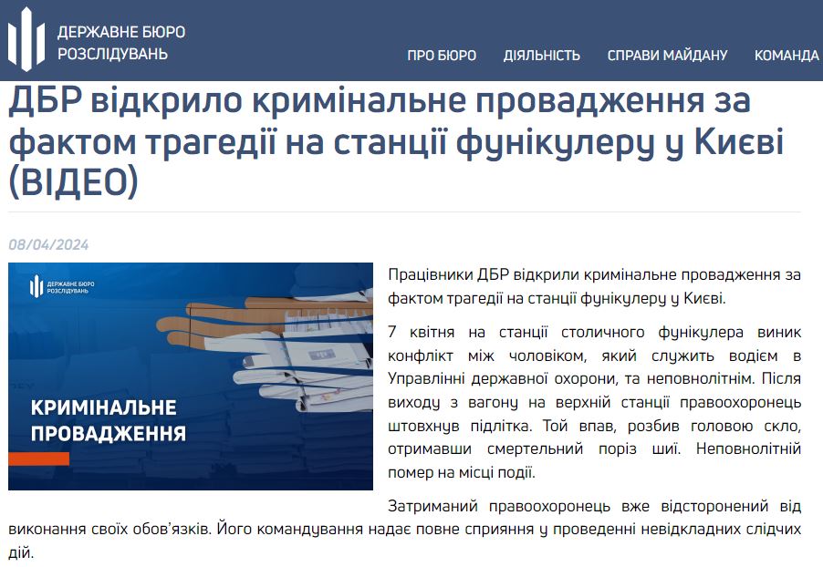 После выхода из вагона фуникулера на верхней станции правоохранитель толкнул подростка. Тот упал, разбил головой стекло и получил смертельный порез шеи. Несовершеннолетний скончался на месте.