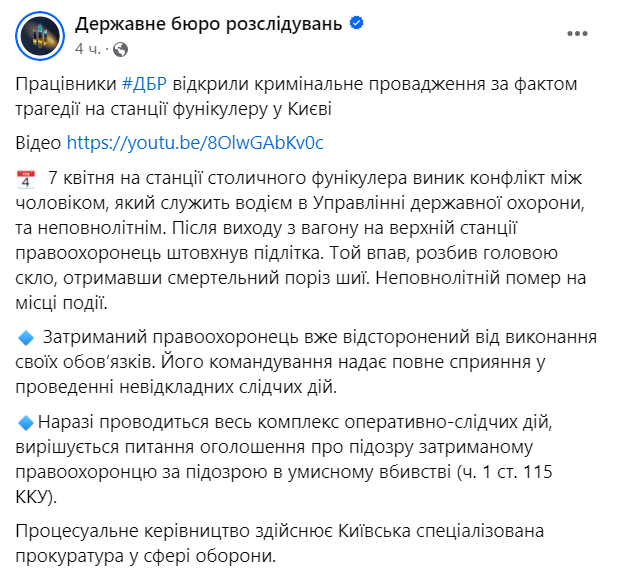 Мужчина, который убил вчера парня на киевском фуникулере, служит водителем в Управлении государственной охраны Украины.