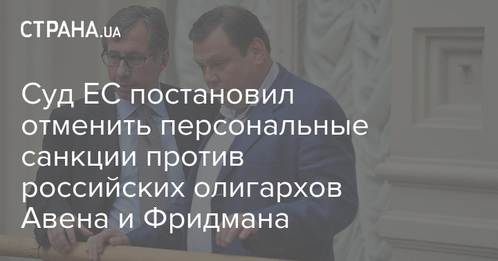 "Суд ЕС постановил удовлетворить иск Петра Авена к Совету ЕС и отменить персональные санкции в отношении него. Совет ЕС должен оплатить судебные издержки", - отмечается в постановлении суда по делу Авена. Аналогичное решение приводится в постановлении по делу Фридмана.