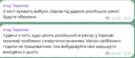 "В Харькове возможны проблемы с энергоснабжением. Метро ближайшие часы не будет работать, так что выстраивайте свои маршруты исходя из этого", - отметил градоначальник.