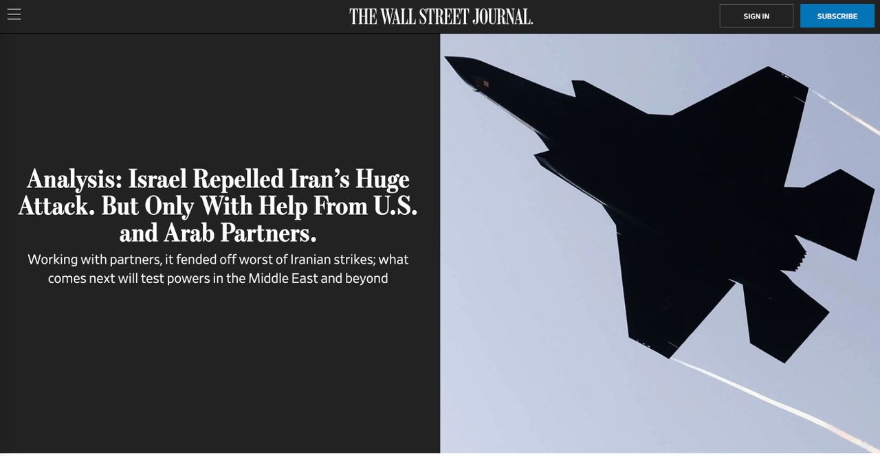 Израиль смог отразить воздушную атаку Ирана только с помощью США и других союзников - The Wall Street Journal