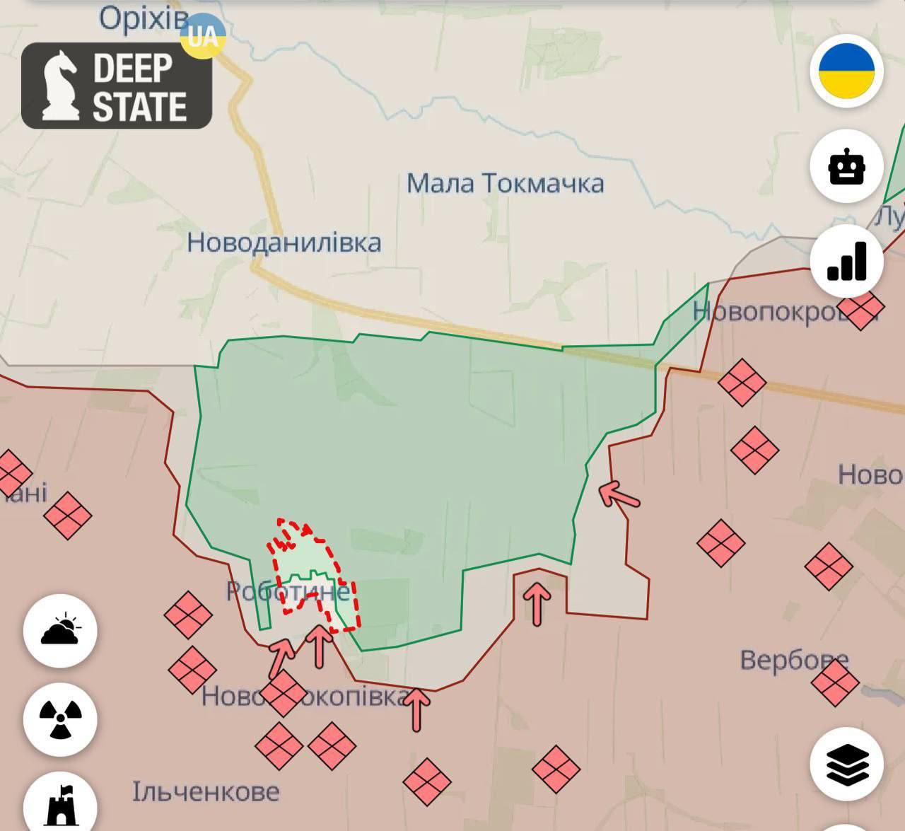 Военный паблик Deep State пишет, что сейчас идут бои в южной части села. Также, судя по карте, с запада его "подпирают" позиции РФ. Если то же самое будет на востоке, оборона села станет крайне проблематичной