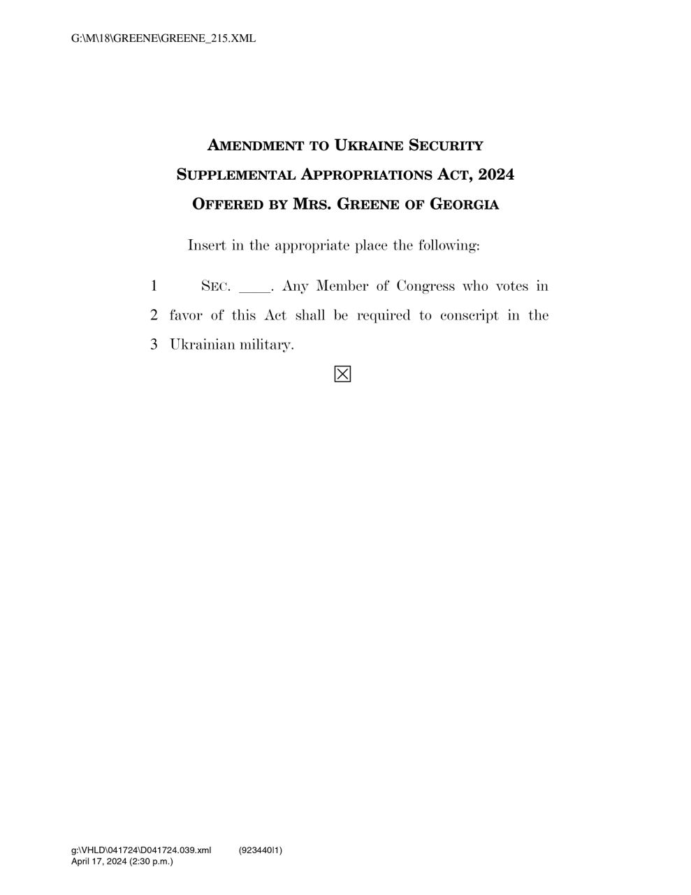 Такую поправку к законопроекту спикера Джонсона внесла член Палаты представителей Марджори Тейлор Грин (республиканка, сторонница Трампа).