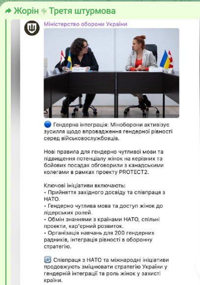 "Мы внедряем новые правила использования гендерно чувствительного языка и создания условий для реализации потенциала женщин в войсках, в частности, на руководящих и боевых должностях", - сообщили в ведомстве.