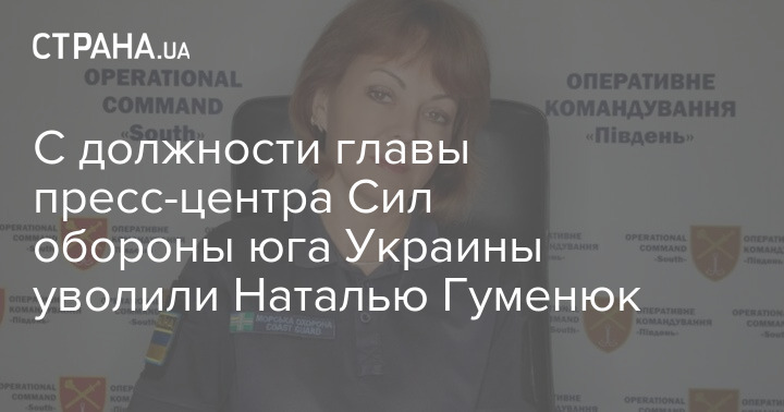 Генштаб ВСУ заявляет, что Наталья Гуменюк уволена с должности главы пресс-центра Сил обороны Юга.
