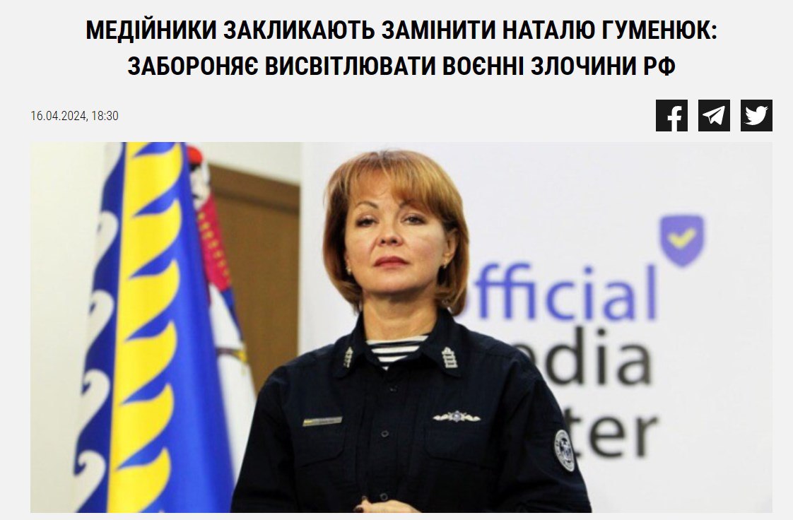 Ранее на Гуменюк пожаловались украинские журналисты из движения "Медиарух" и ряда других организаций. Они заявили, что она "запрещает освещать военные преступления РФ".