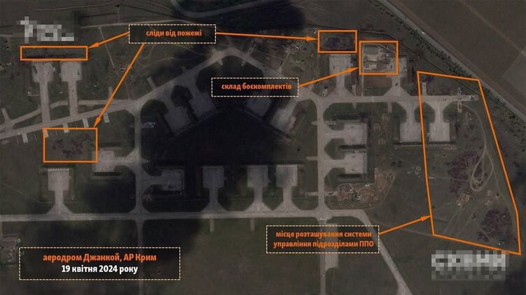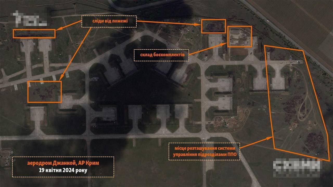 Появились спутниковые снимки последствий удара ракетами MGM-140 ATACMS по военному аэродрому Джанкоя в Крыму ночью 17 апреля.