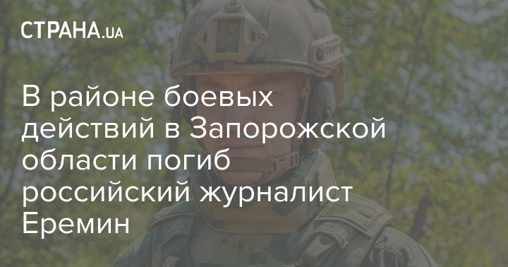 В районе боевых действий в Запорожской области погиб российский журналист Еремин