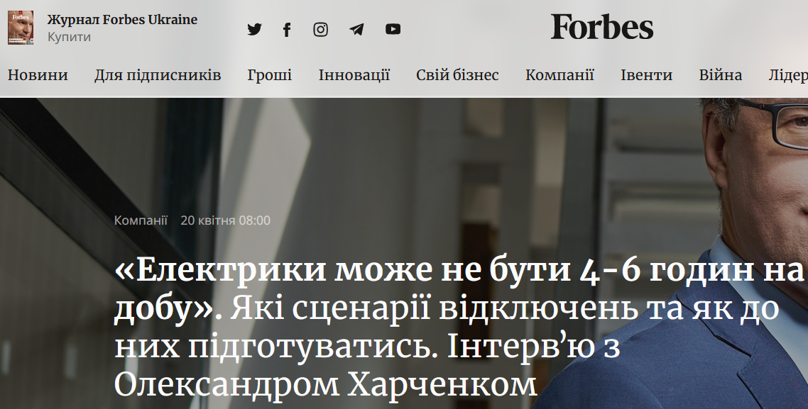 "Мы потеряли до 7 ГВт генерации и повреждены объекты распределения электроэнергии – подстанции и сети. Поэтому я в этом вопросе не оптимист. Украина вряд ли пройдет пики потребления в июле-августе и зимой без ограничений", - сказал Харченко.