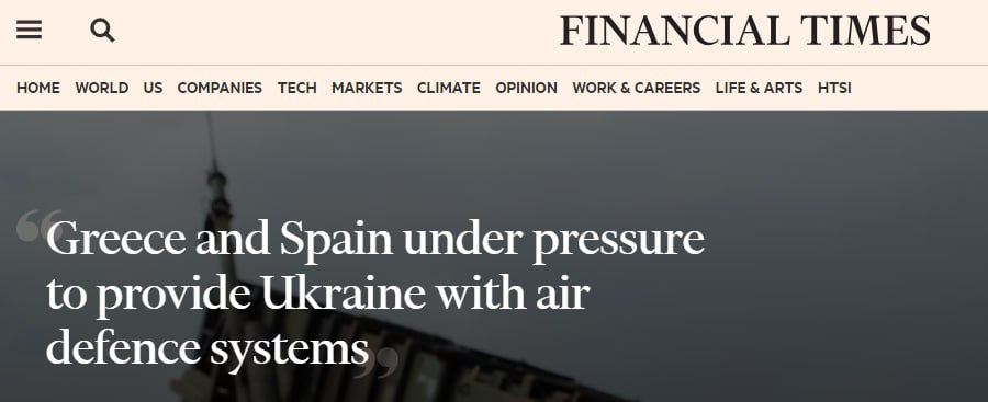 ЕС и НАТО давят на Грецию и Испанию, чтобы они передали Украине свои системы ПВО
