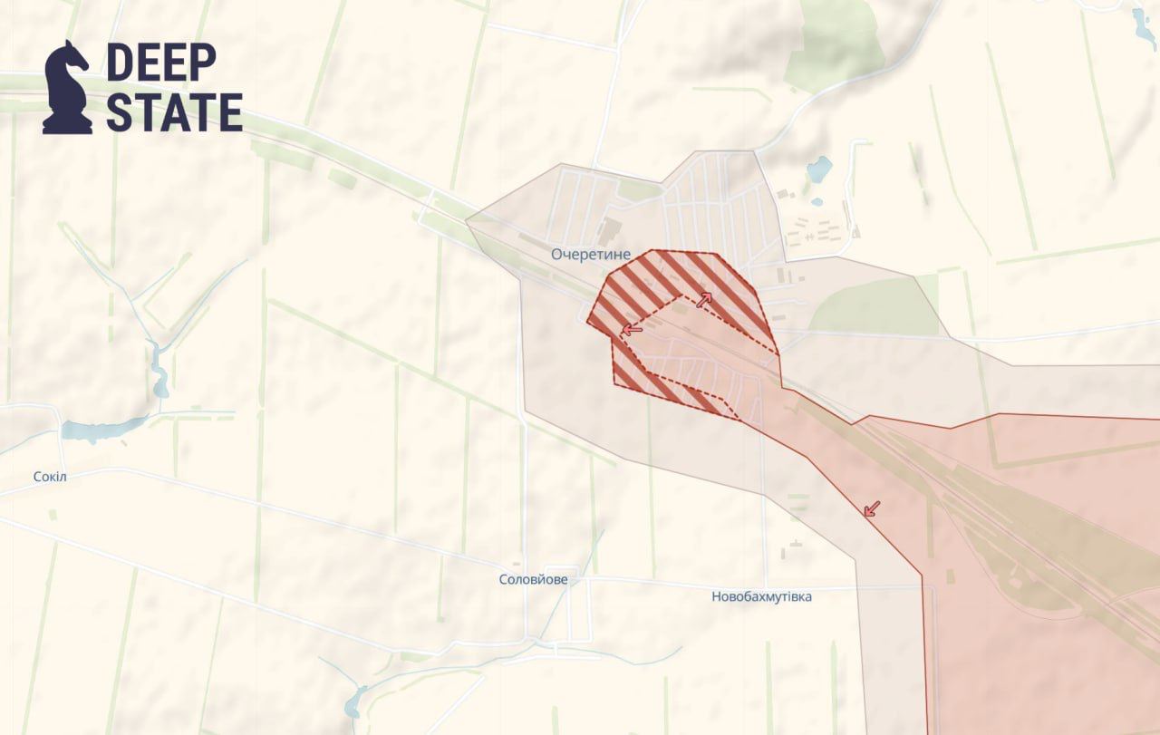 Судя по карте украинского ресурса, поселок примерно наполовину захвачен армией РФ. Ранее российские паблики заявляли о захвате всего населенного пункта.