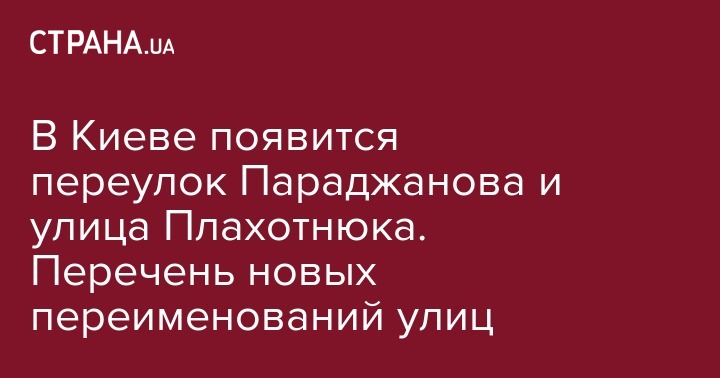 В Киеве появится переулок Параджанова и улица Плахотнюка. Перечень новых переименований улиц