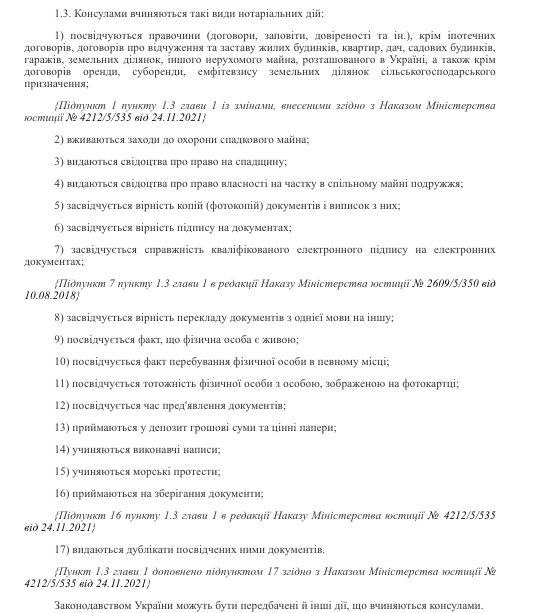 Также консульства совершают нотариальные действия (полный перечень есть в приказе Минюста о порядке совершения нотариальных действий). В частности: