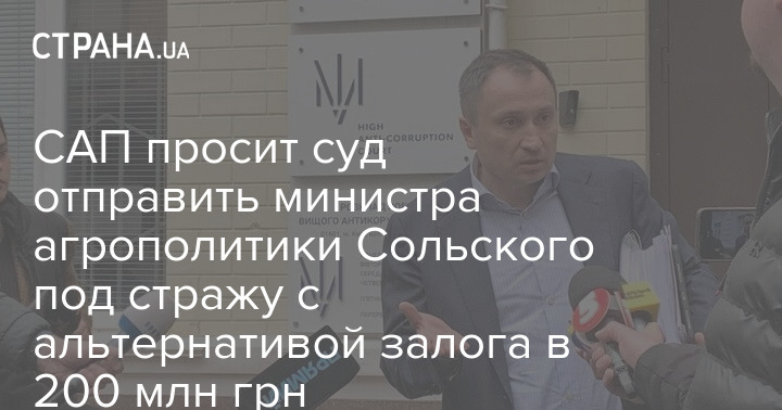 Специализированная антикоррупционная прокуратура просит суд отправить министра агрополитики Николая Сольского под стражу с альтернативой залога в 200 млн грн.