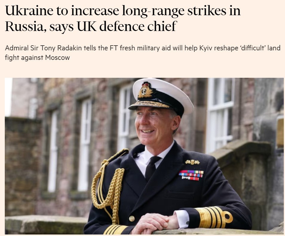 Об этом заявил глава британских вооруженных сил Тони Радакин в интервью Financial Times.