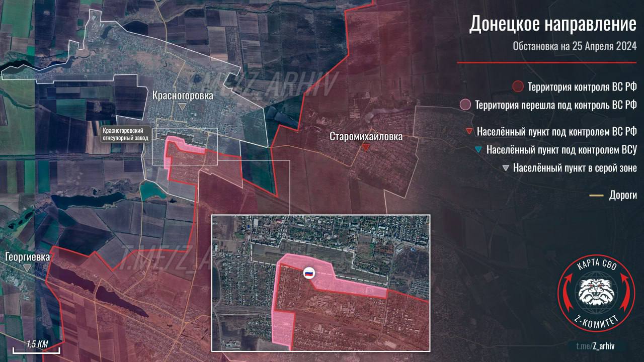 Российские военные паблики пишут о серьёзном продвижении армии РФ в Красногоровке под Донецком. Они публикуют видео с российским флагом в одном из корпусов огнеупорного завода - ключевой точки обороны ВСУ в городе.