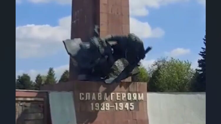В Ровно сбросили с постамента фигуры солдат, установленные в память о советских воинах, погибших во время Второй мировой войны.