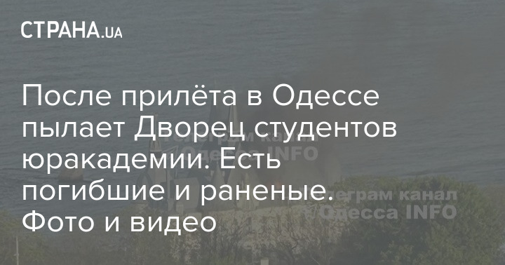 После прилёта в Одессе пылает Дворец студентов юракадемии. Есть погибшие и раненые. Фото и видео
