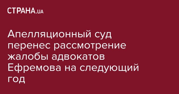 Апелляционный суд Киева перенес рассмотрение жалобы адвокатов Александра Ефремова на продление ему Печерским райсудом меры пресечения в виде содержания под стражей до 22 января 2017 года. Жалоба стороны защиты будет рассмотрена 5 января.