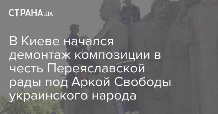 В Киеве начался демонтаж композиции в честь Переяславской рады под Аркой Дружбы народов (ныне - Арка Свободы украинского народа).