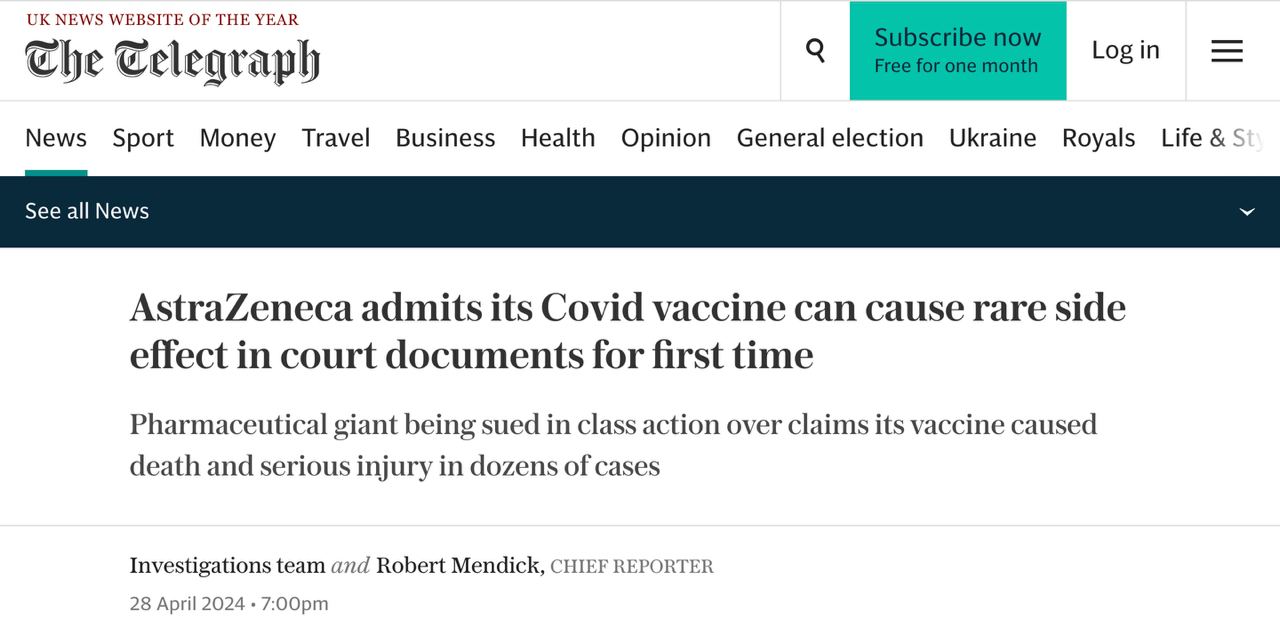 AstraZeneca впервые признала в суде, что ее вакцина против Covid может вызывать редкие побочные эффекты - СМИ