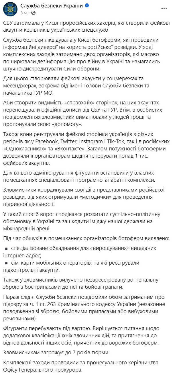 Сообщается, что они создали фейковые аккаунты от имени главы Службы безопасности Василия Малюка и начальника ГУР Кирилла Буданова.