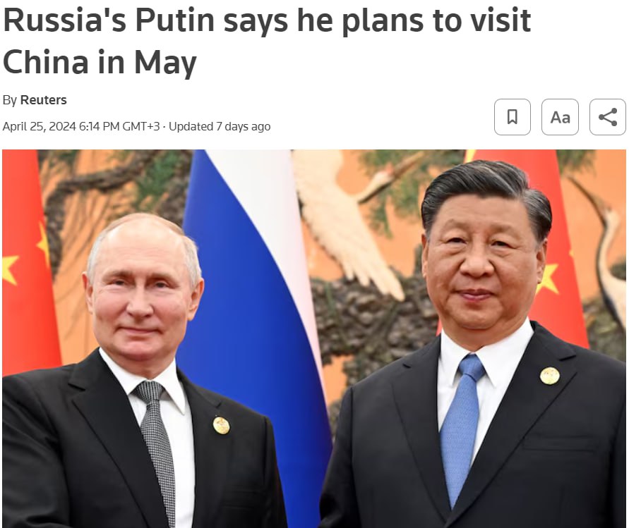 В марте СМИ писали, что в мае Путин планирует посетить Китай для переговоров с лидером КНР Си Цзиньпином.
