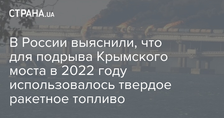 Для подрыва Крымского моста в октябре 2022 года было применено твердое ракетное топливо, спрятанное в рулоны полиэтиленовой пленки.