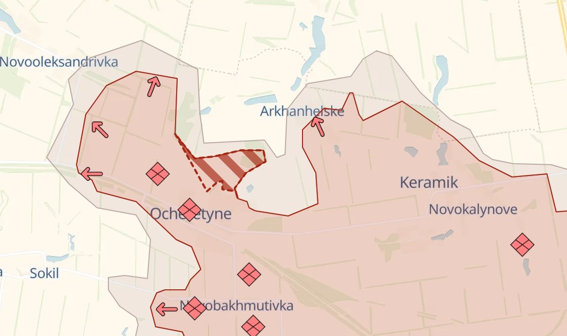 На Авдеевском направлении россияне продолжают продвигаться под Очеретино - с отчетливым направлением в сторону Архангельского, судя по карте ресурса DeepState. О том, что в этом селе к северу от Авдеевки уже идут бои, ранее сообщали и украинские, и российские ресурсы.
