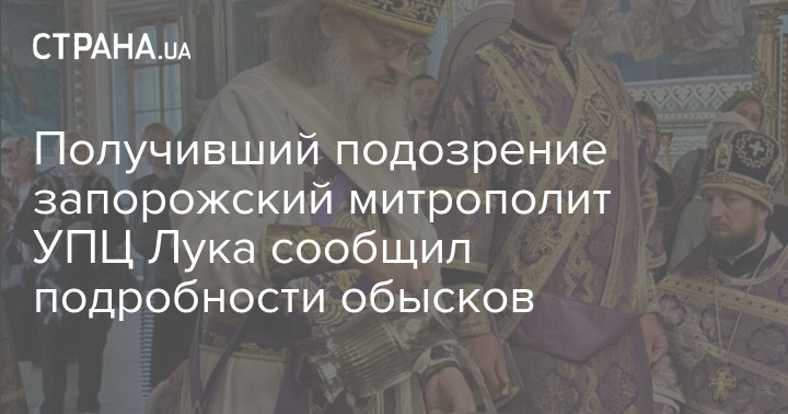 Получивший подозрение запорожский митрополит УПЦ Лука сообщил подробности обысков