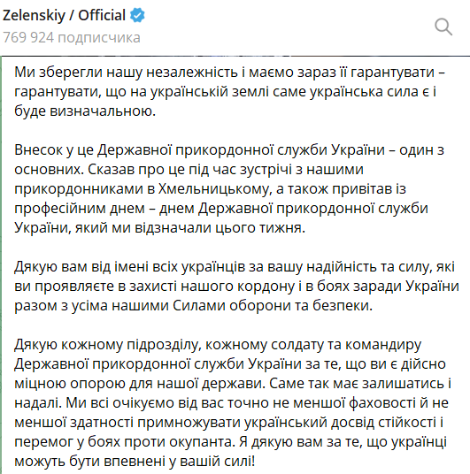 Об этом заявил Владимир Зеленский в обращении к пограничникам во время поездки в Хмельницкий.