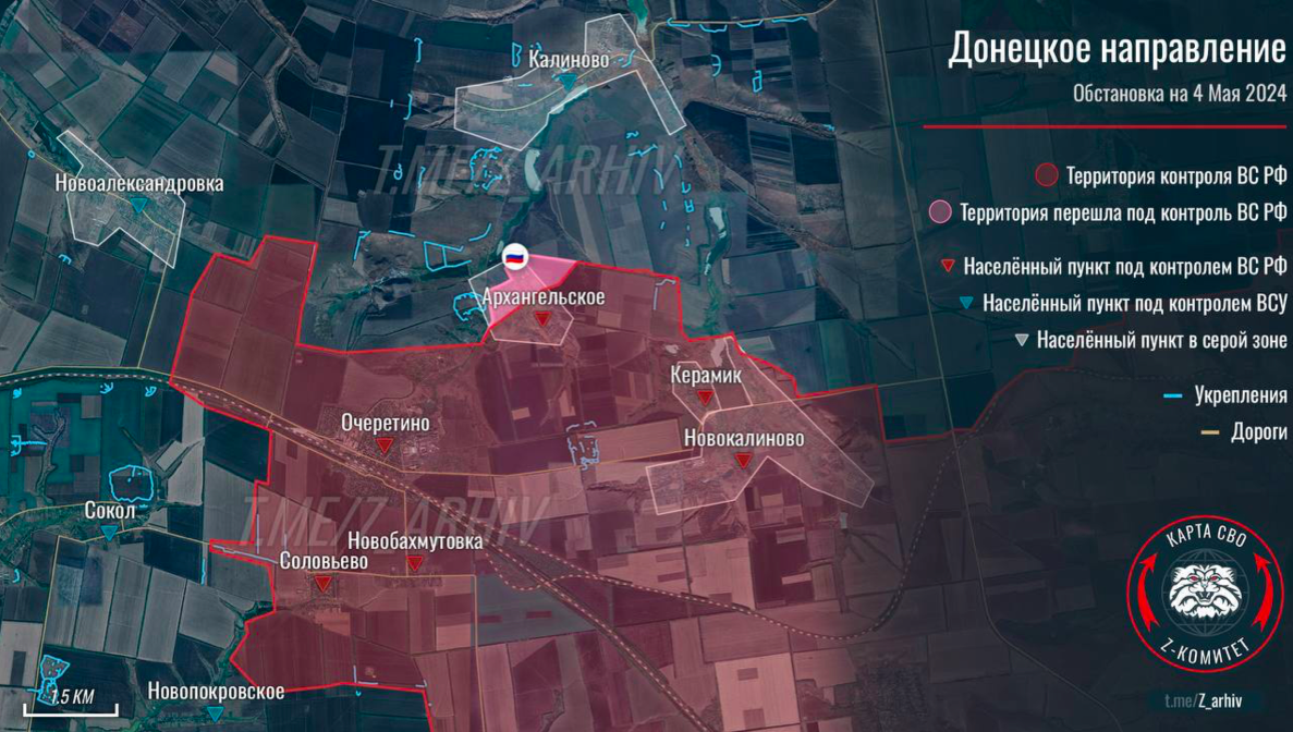 12.41 Российские военные паблики утверждают, что ВСУ покинули село Архангельское близ Очеретино и населенный пункт перешел под контроль РФ.