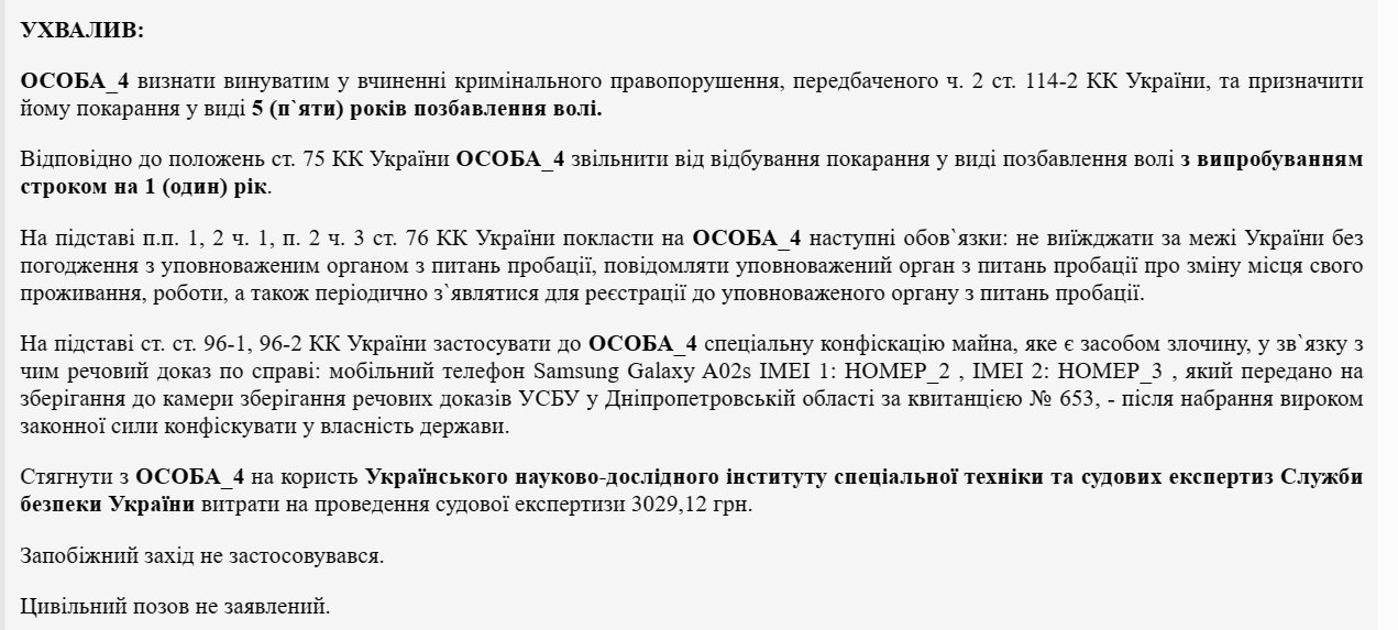 Суд заявил, что блогер выложил в свои социальные сети минимум 10 эпизодов съемки работы представителей ТЦК, которые вручали повестки. Прокуратура квалифицировала такие ролики как распространение информации о передвижении ВСУ.
