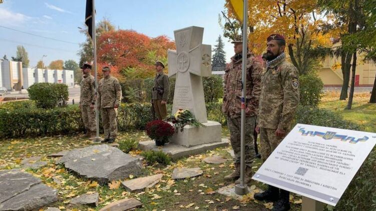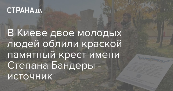 В Киеве двое молодых людей облили краской памятный крест имени Степана Бандеры - источник