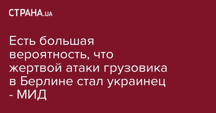 "Печальная весть: есть большая вероятность того, что среди погибших в Берлине все же есть гражданин Украины. Полиция завершает идентификацию тела", - сообщил посол Украины.