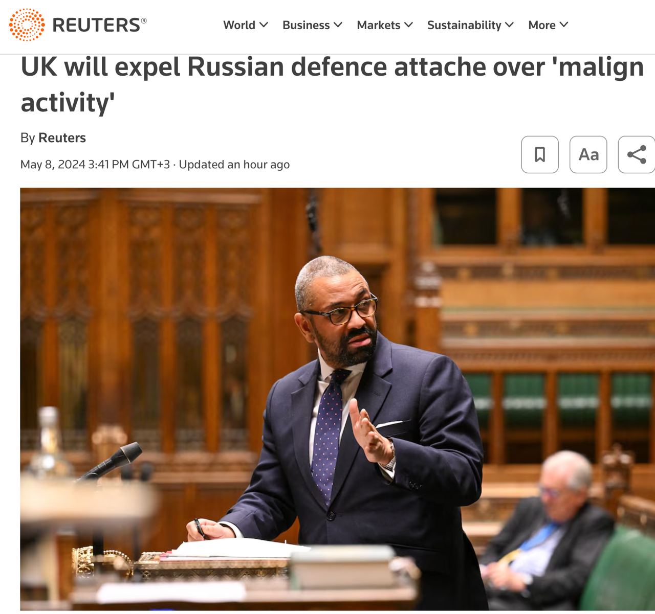 Великобритания объявила о высылке военного атташе РФ из-за "злонамеренной деятельности".