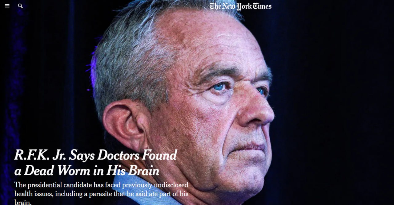 В мозгу Роберта Кеннеди-младшего, который собирается баллотироваться на выборах президента США 2024 года, нашли мертвого паразита, который мог съесть часть тканей его мозга.